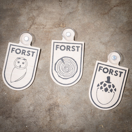 Ziemlich cooles KFZ-Holzschild "FORST" mit Saugnapf